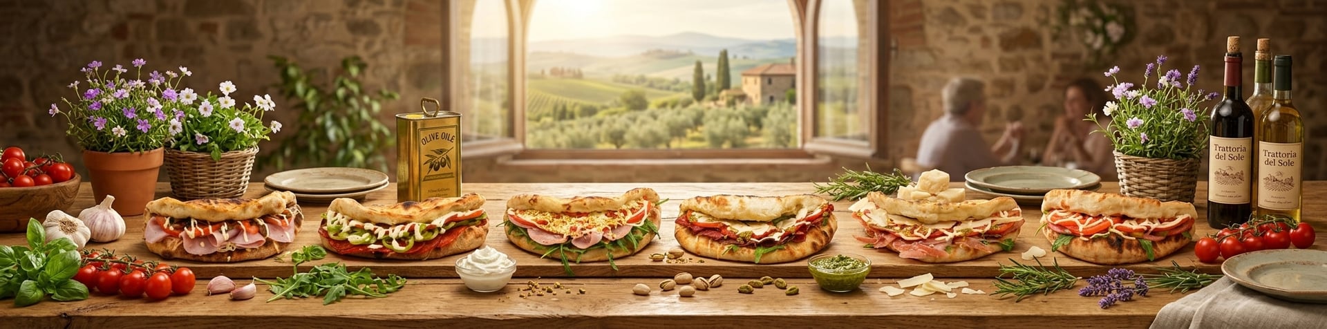 Кашкавал, мортадела, домати, рукола, ф'стак, бел сос